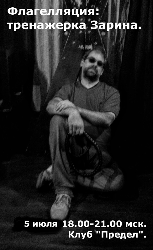 1) Базовый семинар по флагелляции для начинающих начнётся в 15.00 и закончится в 20.00. В него входят теоретическая часть и практическое обучение.